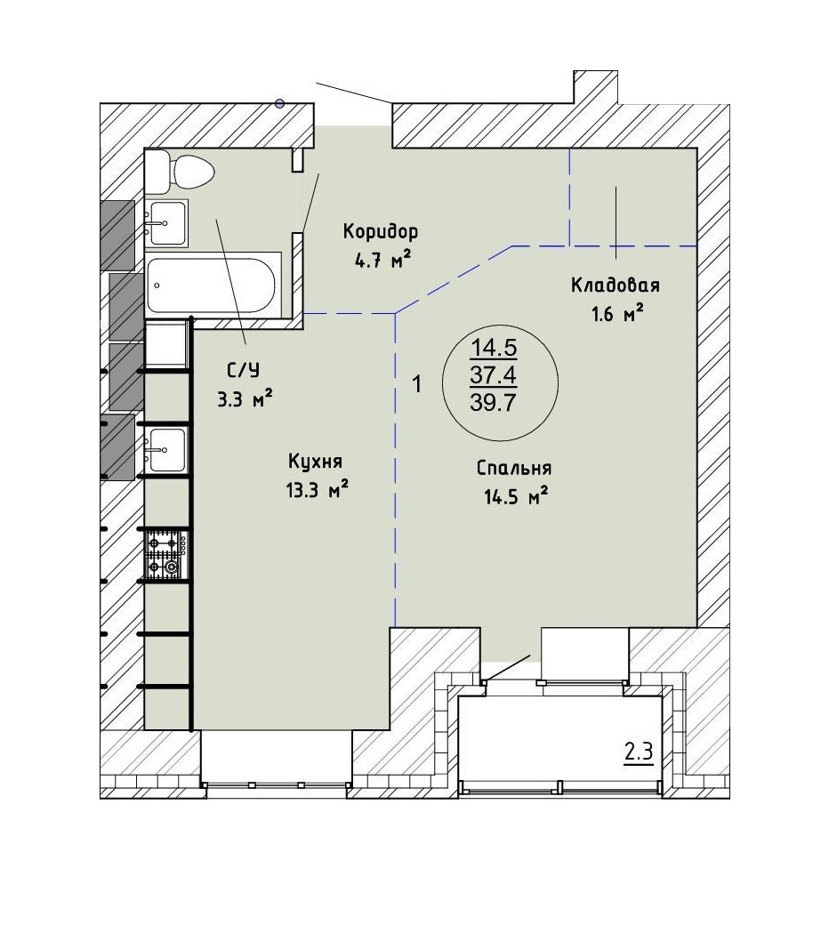 Лоджия - 2,3 м²