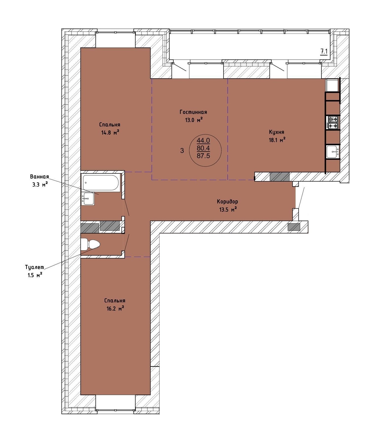 *Указаны проектные размеры. После ввода в эксплуатацию фактическая площадь уточняется по замерам БТИ.