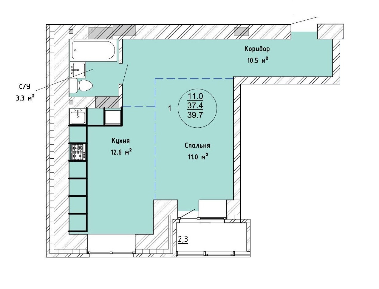 Лоджия - 2,3 м²